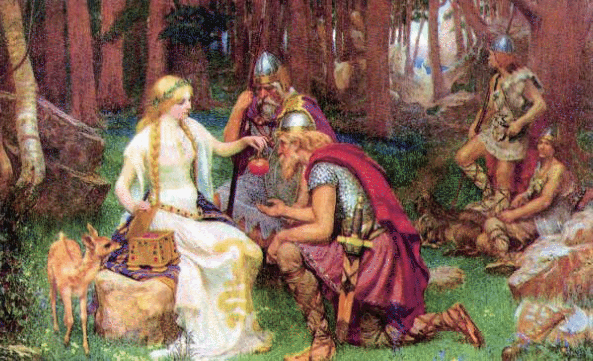 북유럽 신화는 스칸디나비아 지역의 여러 민족들의 신화로 프로토-게르만 시대(서기 200-800년경)부터 형성되어 바이킹 시대(서기 8-11세기)까지 널리 믿어지다가 기독교 전파 이후 쇠퇴하였다. 북유럽에서 주신(主神) 오딘(Odin)은 지혜로운 노인의 모습으로 묘사되었다. 그러나 전사 문화 속에서는 전장에서 죽는 것이 영광이고 노환으로 죽는 것은 불명예였다. 신들은 이둔(Idun)의 황금 사과를 먹어야 젊음을 유지할 수 있었으며 이둔이 납치되자 신들조차 늙어갔다(Fig. 4) [17].